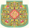 Single sheet, with a dark green oblong and three parts of embroidery, intended to be folded over and the bottom sides sewn to the middle, with the top remaining as flap. The embroidery is couched gold cord, with what looks like mostly applique of two types embroidered or printed ribbon. Such items were common in earlier ages as portefeuilles. The Rijksmuseum has one from Michiel de Ruyter, with beads and embroidery, from the seventeenth century. Still useful as wallet or clutch or holder for a smartphone.